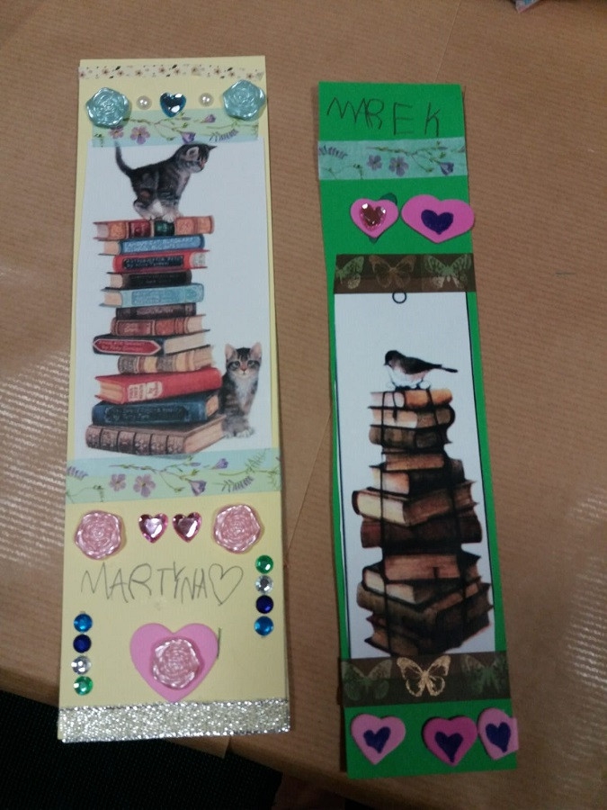 Ferie w Bibliotece w Łężycy. Dzieci na zajęciach plastycznych wykonały zakładki do książek.