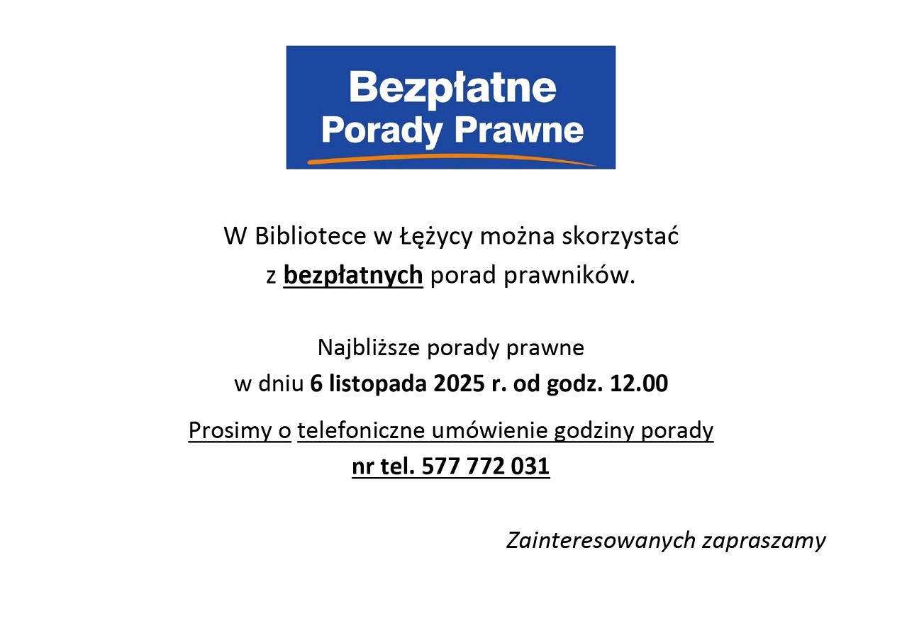 Dnia 15.11.2025 Biblioteka w Łężycy jest CZYNNA w godz. 11.00 - 15.00!