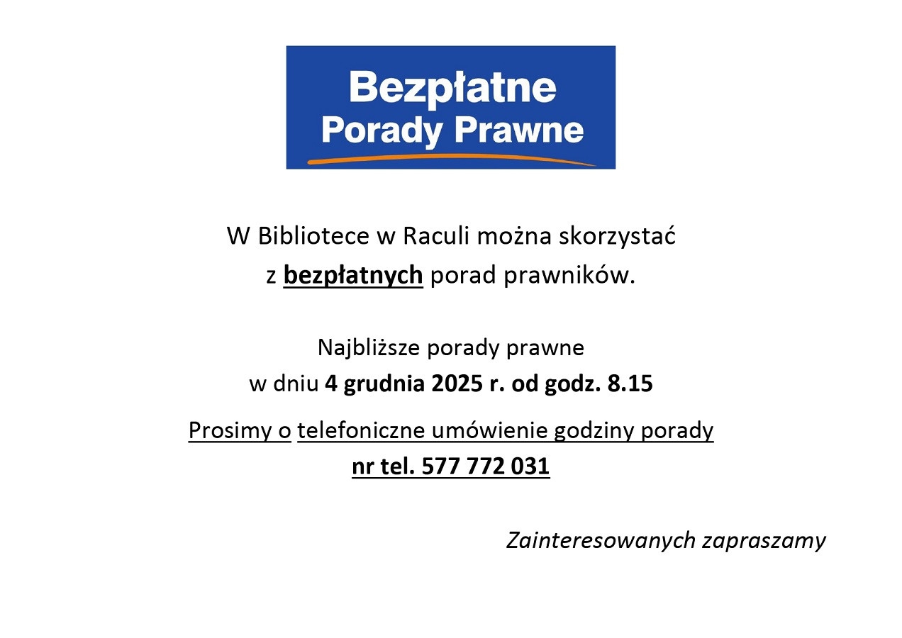 Telefon w Bibliotece w Raculi został uszkodzony. Tymczasowy kontakt: 603 291 070